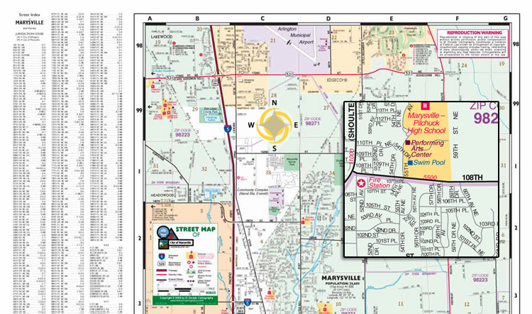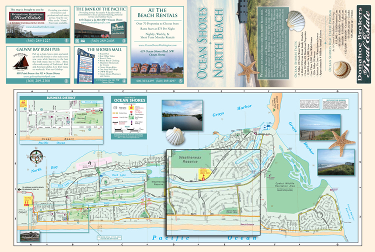 11The perfect size to give out at the desk, include in a prospectus or mail. Colorful Arterial maps of Southern California or Washington State communities with whimsical icons showing places of interest. Includes a detailed inset of your location. On the reverse side show them a list of "things to do" with directions to your facility!